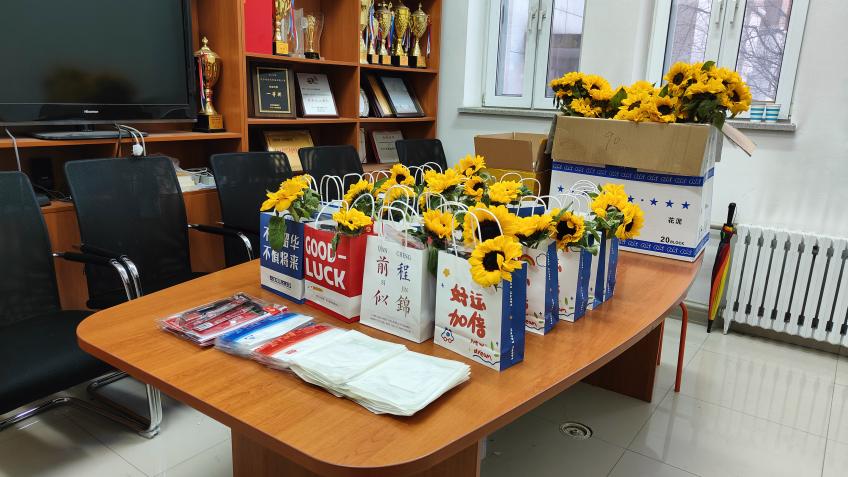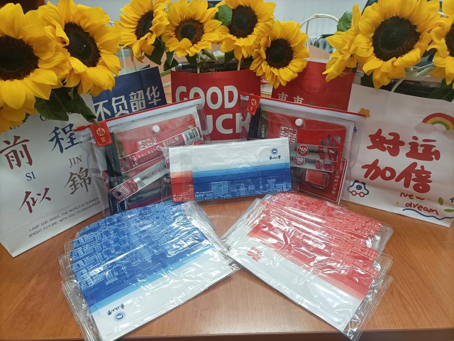 学院还为考研学子们精心准备了“一举夺魁”考研福袋,福袋中包含考试所需的文具用品、太阳成集团tyc33455专属口罩、向日葵等,每一件礼物都承载着美好的寓意,福袋上印有全院师生的祝福语,寄予了对考生无限的鼓励和期望,祝福考研学子们一战成“硕”,不负夜以继日的努力与奋斗。
