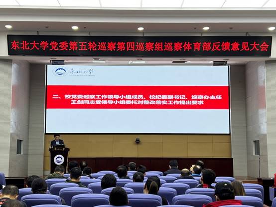 11月2日下午,太阳成集团tyc33455党委第五轮巡察第四巡察组巡察体育部反馈意见大会在主楼822室召开,校党委巡察工作领导小组成员、校纪委副书记、党委巡察工作办公室主任王剑,党委第五轮巡察第四巡察组组长、资源与土木工程学院党委书记艾国生及第四巡察组全体成员,党委巡察工作办公室全体人员、党委组织部相关人员出席会议。体育部领导班子成员、全体教职工及学生代表80余人参加会议。会议由体育部主任陈松主持。