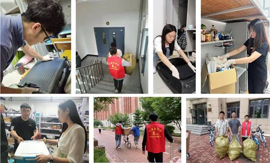聚焦暖心保障,周到服务见证专属爱心。学院辅导员24小时驻校值守,化身“打包员”“快递员”,深入宿舍为学生打包、邮寄行李,购置行李托运手推车,及时解决学生的困难与需求。学院“春风”党员志愿服务队招募31名学生志愿者,点对点对接有需求的毕业生,帮助毕业生寄送行李。“你接我开学,我送你毕业”,志愿者们帮助学长学姐打包搬运行李,将思念和祝福也装进毕业生的行囊中。