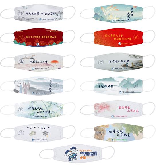 聚焦情怀担当,精巧设计承载深情祝福。学院为每位毕业生设计、定制一套毕业主题口罩作为临别赠礼。每套口罩包含13种不同内容,其中“十二地支系列口罩”分别从美好祝愿、家国情怀、送别之情、谆谆教诲、加油鼓励、大学回忆六方面送出毕业寄语,每副口罩上标有十二地支中的一个时辰,代表学院给予毕业生“24小时”的温暖与守护;番外设计版由毕业生自主设计,以校名、院名、学院卡通形象“云小C”为主要元素,代表毕业生对母校的厚意深情。