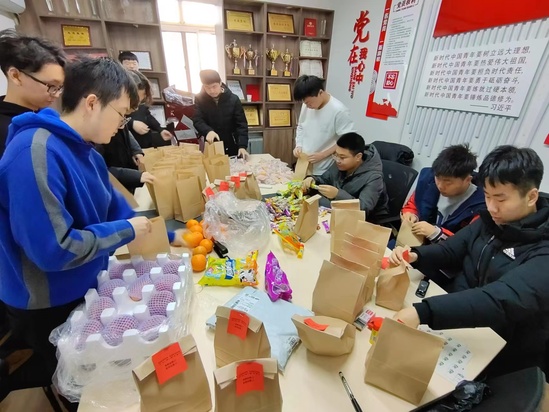 (辅导员带领学生干部为考研学生准备加油礼包)