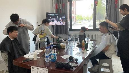 学院在五一假期举办免费理发活动,招募学生志愿者每天为学院学生提供理发服务。学生理发志愿者凭借娴熟的技术和周到的服务,得到了广泛好评。理发结束后,同学们对自己的理发师表示感谢,并主动帮助清扫地上碎发。在五一假期,免费理发活动为近200名学生提供服务。