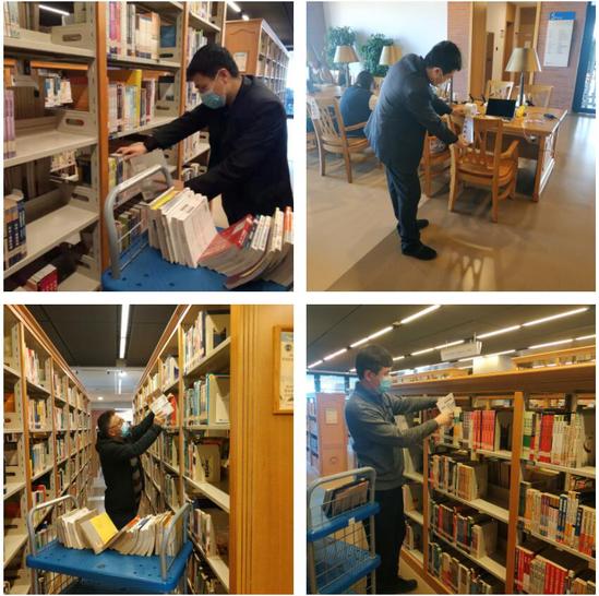 3月16日开始,图书馆留守的教职工坚守南湖校区与浑南校区图书馆一线岗位,通过“一人多岗”与白班夜班连轴转的模式,保证了图书馆从早上8点到晚上10点、从周一至周日均对全校师生开展服务。留馆同志每天做好馆内安全巡视、防疫与卫生清洁、图书借还与分类上架、信息咨询、文献采购、服务器维护、科技查新报告打印与邮寄、疫情志愿者服务等工作,全力保障馆内服务不中断。