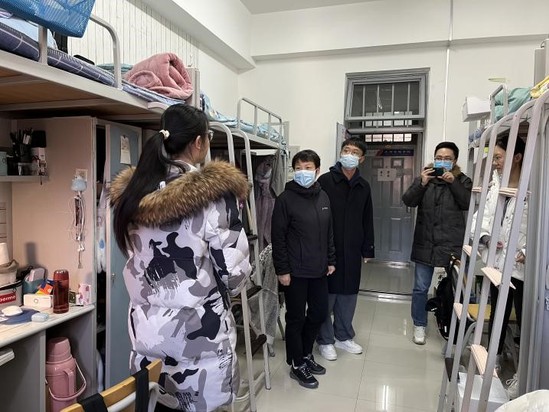 3月17日,任丽一行到学生寝室走访慰问并与学生代表座谈,详细了解疫情防控期间学生线上学习情况及日常生活状态,鼓励学生要继续加强理论学习,丰富实践技能,遵守疫情防控各项要求,共同守护校园健康安全。会后,任丽为学生发放了防疫物资。