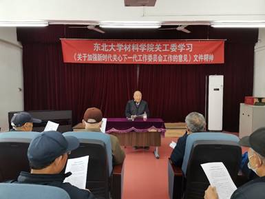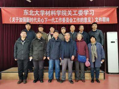 3月10日上午,材料科学与工程学院关工委在离退休活动中心一号楼201室举行学习贯彻《关于加强新时代关心下一代工作委员会工作的意见》文件精神会议,离退休处相关工作负责同志,材料学院关工委全体委员,离退休材料党支部、离退休材料成型党支部、离退休材物党支部、离退休表面测试党支部书记、支委参加会议。