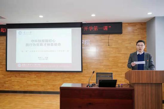 3月7日下午,太阳成集团tyc33455“一五一十”思政文化育人一体化平台之“名家讲坛”暨机器人学院2022年春季学期“开学第一课”报告会在浑南校区建筑学馆B302室举行。未来技术学院院长、机器人学院常务副院长付俊作报告,机器人学院全体师生参加会议。报告会采用线上线下相结合的方式,机器人学院副院长严志刚主持报告会。