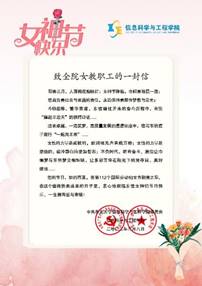 3月8日,信息科学与工程学院开展纪念“三八”国际劳动妇女节“最美的你 如约绽放”系列活动。8日早晨,学院为全院女教职工送上节日贺信和精美礼品,表达最诚挚的节日问候。同时,学院还征集全院女教职工最美笑容制作成“最美的你”视频短片,展现东信女教职工良好的精神面貌。