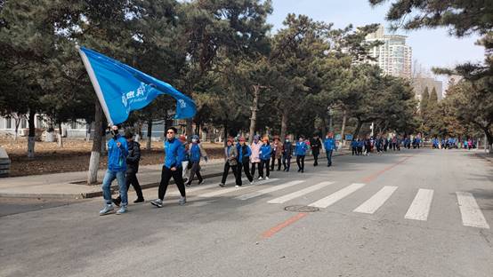 张琦宣布健步行正式开始,东信教工们从北广场出发,途经汉卿会堂、一二九花园、刘长春体育馆等地,健步3.8公里,共同走过“东信之路”。