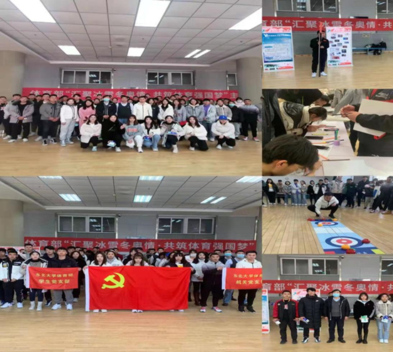 3月7日中午,体育部机关党支部、2019级硕士生党支部、2020级硕士党支部、2021级硕士生党支部和本科生党支部在刘长春体育馆联合举办“汇聚冰雪冬奥情,共筑体育强国梦”主题党日活动,共有50余名党员参加活动。