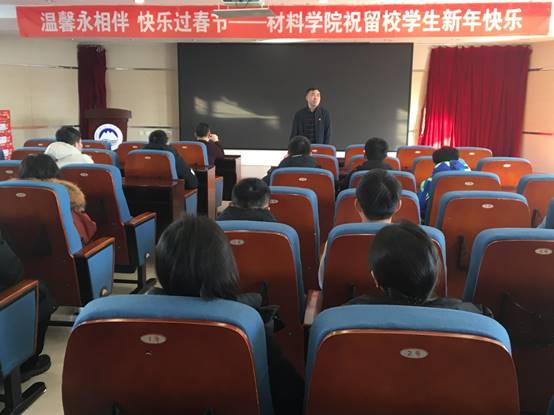 虎年将至,岁寒情暖。材料科学与工程学院于1月29日在知行楼634室开展2022年材料学院寒假留校学生新春慰问活动。学院党委书记张玉宝,党委副书记、副院长(兼)贺翔看望慰问寒假留校学生,向大家致以节日问候和新春祝福。