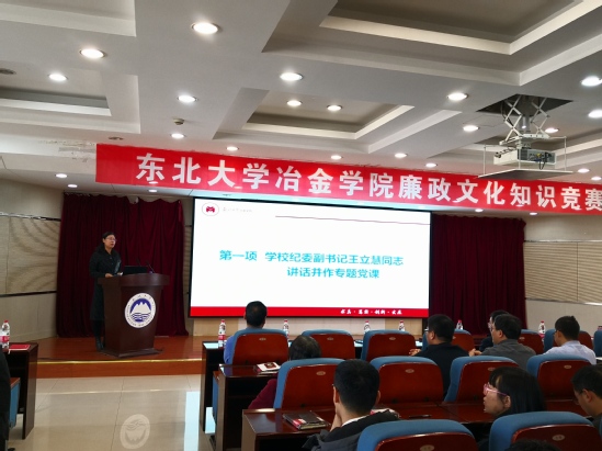 12月14日,冶金学院党委在知行楼634报告厅举办2021年廉政文化知识竞赛。学校纪委副书记王立慧,冶金学院党委书记张耀伟,院长刘承军,副院长杜涛、韩庆、王梅,党委副书记、副院长(兼)吕志娟,学院党委委员、纪委委员以及21个教工及博士生党支部的支部书记、纪检委员、党员代表等近100人参加活动。此次会议由学院党委副书记、纪委书记储满生主持。
