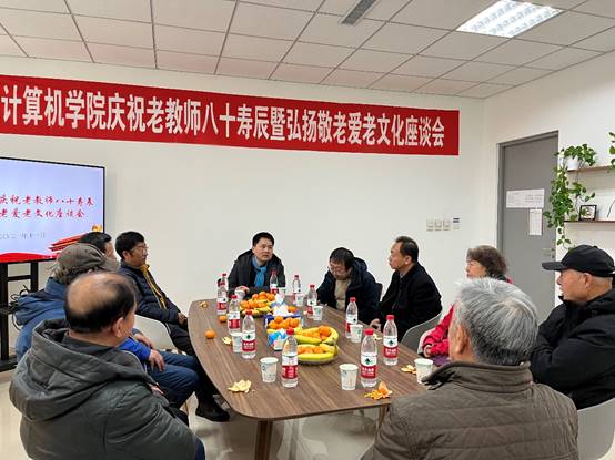 11月26日,计算机科学与工程学院庆祝老教师八十寿辰暨弘扬敬老爱老文化座谈会在学院茶歇室召开,今年恰逢八十寿辰的马永生老师及学院多名退休老教师应邀参加。学院党委书记邸馗,副院长付冲、马国强,党委副书记、纪委书记毕远国,工会主席信俊昌参加会议。