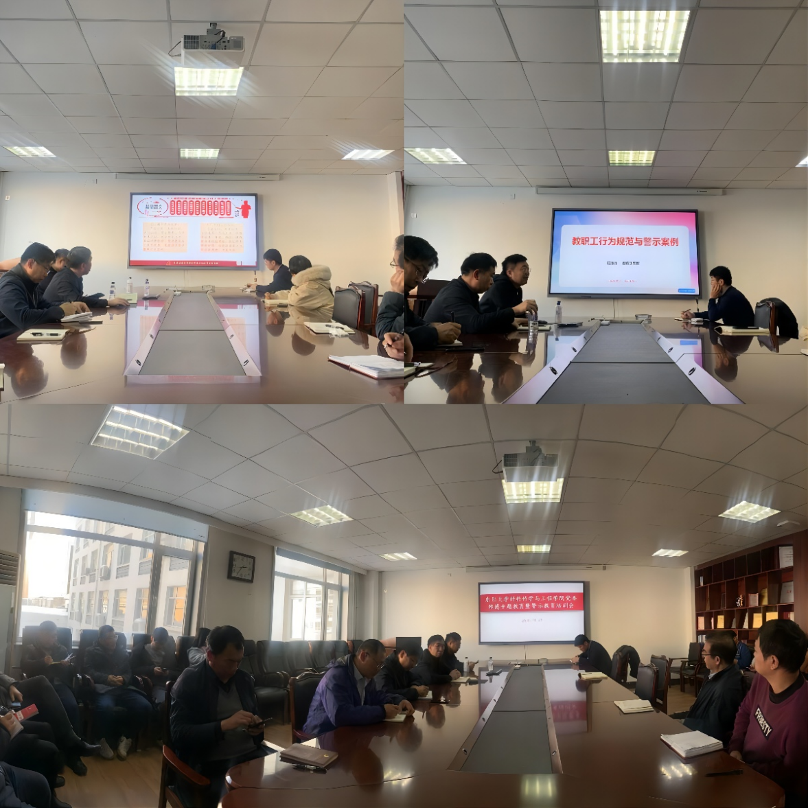 学院党委副书记、纪委书记徐大可介绍了教育部汇编的《违反高校教师职业行为十项准则的警示案例》。徐大可强调,全体教职工要以案为鉴、深刻反思,常怀警戒之心、紧绷纪律之弦,牢记《准则》中各项正面规范和负面清单,自觉自省,防微杜渐。