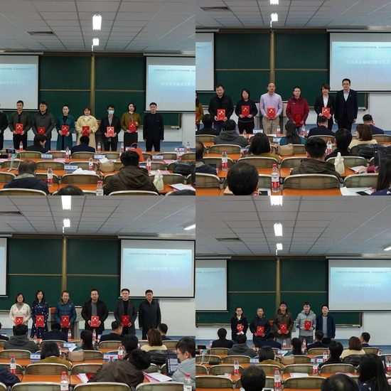 杨金柱宣读《计算机科学与工程学院关于在本科生班级配备班导师的通知》《计算机科学与工程学院关于在2019级、2021级本科生班级配备企业班导师的通知》。刘云飞、徐长文、鲍玉斌、马国强为到场的企业班导师及校内班导师颁发聘书,各班负责人为班导师献上同学们亲手制作的极具传统文化内涵的“谢师礼”。