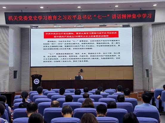 9月17日下午,机关党委组织22个党支部130余名干部和党员在主楼822室开展党史学习教育之习近平总书记“七一”重要讲话精神集中学习。机关党委书记初青松作专题报告。