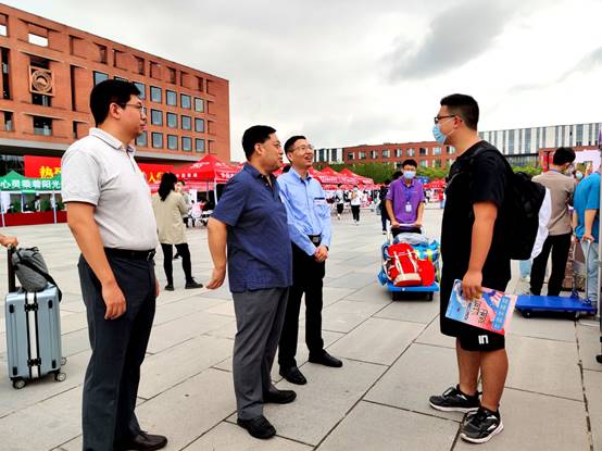 机器人学院常务副院长吴成东,副院长贾子熙、严志刚、范松涛前往迎新现场指导工作,对新生到来表示欢迎,与新生亲切交流,慰问在场工作人员、志愿者。