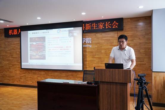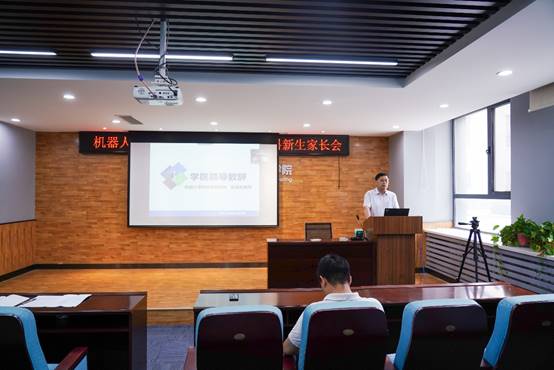 优秀本科生代表、机器人1802班杨林涛同学向新生家长们汇报了自己入学三年来在机器人学院的发展成长经历。学办相关负责人就新生家长关注的问题进行了解答。