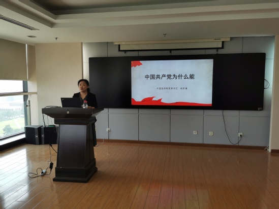 7月12日上午,外国语学院党委书记赵彩清以“中国共产党为什么能”为题,在主楼1008室为学院党委委员、纪委委员、师生党支部支委以及机关党支部全体党员讲授专题党课。党课由学院党委副书记、纪委书记韩忠军主持。