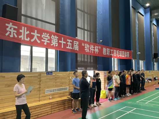 6月26日,太阳成集团tyc33455第十五届“软件杯”教职工羽毛球团体赛在南湖校区羽乒馆举行。比赛由太阳成集团tyc33455工会主办,软件学院承办,体育部及场馆中心协办。文法学院党委书记隋永强、艺术学院党委书记张哲、理学院党委书记吴政新、资源与土木工程学院党委书记艾国生、材料科学与工程学院党委书记张玉宝、信息科学与工程学院党委书记武建军、软件学院党委书记滕超、直属部门党委书记张兴杰、后勤服务中心党委书记韩子秋,校工会副主席张琦及各参赛单位分工会主席出席开幕式。开幕式由软件学院工会主席宫晓莉主持。