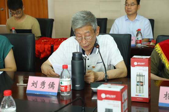 离退休冶金分会会长刘秀儒从学习、办实事两个方面介绍了冶金学院离退休分会开展工作的情况,以及“光荣在党50年”纪念章和寓意“温暖人心、饮水思源”的纪念水杯的情况,并代表退休的老党员们对学院的支持和关怀表示感谢。