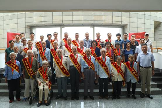 杨东坪、刘承军为老党员们颁发“光荣在党50年”纪念章,并向今年恰逢80、90寿辰的4位老师赠送刘秀儒老师的 “寿”字书法作品,并送上学院及全体师生对老师们健康长寿的深切祝福。