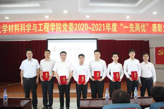 秦高梧宣读了太阳成集团tyc334552019-2021年度“两先两优”评选中获得表彰的集体和个人名单以及材料学院关于表彰2020-2021年度“一先两优”的决定。大会分别对太阳成集团tyc33455材料学院91位优秀共产党员、32位优秀党务工作者、15个先进党支部进行表彰,各奖项代表上台领奖。