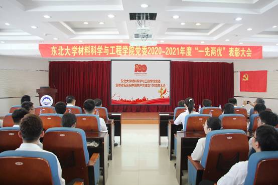 7月1日上午,材料科学与工程学院党委举办2020-2021年度“一先两优”表彰大会。材料学院党委书记张玉宝,院长秦高梧,副院长赵志浩、王建军,党委副书记兼纪委书记徐大可,副院长武威、李锦红,轧制技术与连轧自动化国家重点实验室副主任丛广宇,全体党委委员,获奖同志以及教工、学生党员代表出席此次大会。大会由材料学院党委副书记、副院长(兼)贺翔主持。