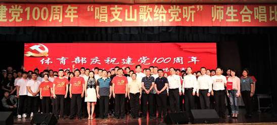 6月23日下午,体育部在大学生活动中心举办庆祝中国共产党成立100周年“唱支山歌给党听”师生合唱比赛。正处级组织员、党委组织部副部长姜玉原,党委宣传部副部长李晨,工会副主席张琦,团委副书记郑兴燕,及团委、艺术学院相关工作负责同志出席活动并担任评委,体育部、体育场馆管理中心领导及全体师生参加活动。