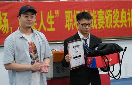吕博斯与聂国东共同签订了校企合作协议。吕博斯为“闪耀职场,微笑人生”职场挑战赛中获奖的同学颁奖。