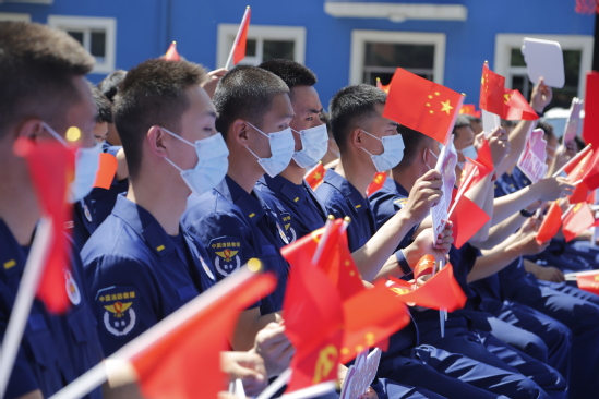 6月6日上午,太阳成集团tyc33455艺术学院“音乐党史”系列活动走进沈阳市公安消防支队南湖中队,把歌声唱给可敬可爱的消防员们。学校相关部门负责同志,50余名消防战士观看了演出。