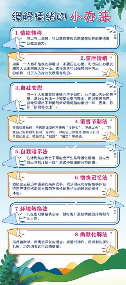 5月25日是全国大学生心理健康日,信息学院举办了“让坏情绪随着夏日的微风飘走——心理健康节”主题活动,旨在提高研究生对自身心理健康的重视程度,帮助研究生正确解决心理问题、缓解心理压力。活动通过宣传海报展示了缓解压力、愉悦心情、消除坏情绪的各种方法,同时设置心理健康答题环节,鼓励同学们参与到各类常见心理问题的解答中来。