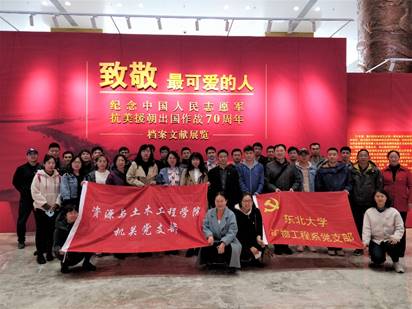 在辽宁省档案馆,师生们参观了纪念中国人民志愿军抗美援朝出国作战70周年的档案文献展厅。该展厅以图片资料、文献、实物、模拟场景和多媒体影像相结合的形式展出,全景展示了中国人民保卫和平、反抗侵略的生动画面。透过历史照片和影像资料,师生们认真学习了抗美援朝这段新中国史上的非凡历程,深刻领会了中国人民志愿军维护国家安全和世界和平的英雄气概,深刻感受了抗美援朝战争的伟大胜利是中国人民站起来后屹立于世界东方的宣言书,是中华民族走向伟大复兴的重要里程碑。