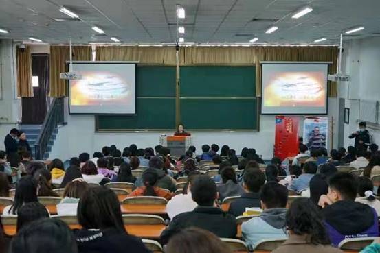 与会师生一起观看了宣传片《沈飞辉煌之路》,通过视频对航空工业沈飞有了一定了解。宣讲员刘佳讲、薛海梅、赵丹袆分别以“沈飞创业之路”、“罗阳同志的两件事”和“用生命践行航空报国的罗阳”为题,通过视频短片、丰富的图片和纪录信息等,讲述了感动中国年度人物——罗阳的“航空报国”志向及其为我国航空事业发展作出的突出贡献。