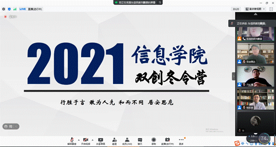 陈东岳表示,创新能力对学生个人发展十分重要,学院将聚合优势力量帮助同学们实现实践创新能力的锻炼与创新创业成果的产出。陈东岳宣布,信息科学与工程学院2021年双创冬令营正式开营。