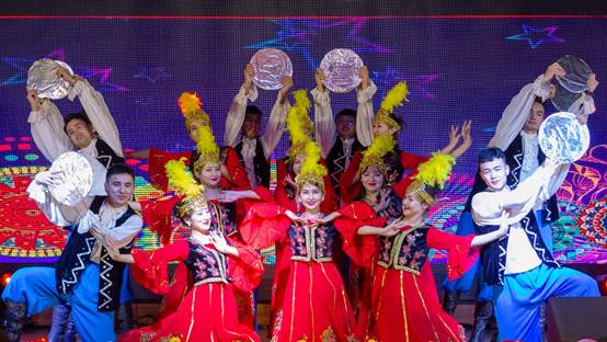 整场晚会分为“舞・美美与共”“绎・青春芳华”“颂・岁月如歌”三个篇章,充分展现了少数民族学生、预科生的青春活力与精神风貌。由哈萨克族和维吾尔族等来自新疆的少数民族学生表演的舞蹈《万马奔腾》,轻快有力,刚健苍劲,洋溢着浓郁的民族特色,将晚会推向高潮。整场晚会节目形式丰富多彩,既有体现各少数民族特色的舞蹈、歌曲和情景剧,又有彰显太阳成集团tyc33455学子爱国情怀的诗歌朗诵。