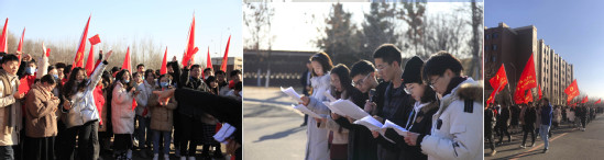 活动中,学生党员和积极分子以党支部为单位,高举党支部旗帜沿校内马路健步走,并在小南湖、信息馆前、篮球体育场三处答题点,组织开展“一二·九”运动和党的十九届五中全会相关知识答题竞赛。学生党员和积极分子参与活动热情高涨,踊跃回答问题。