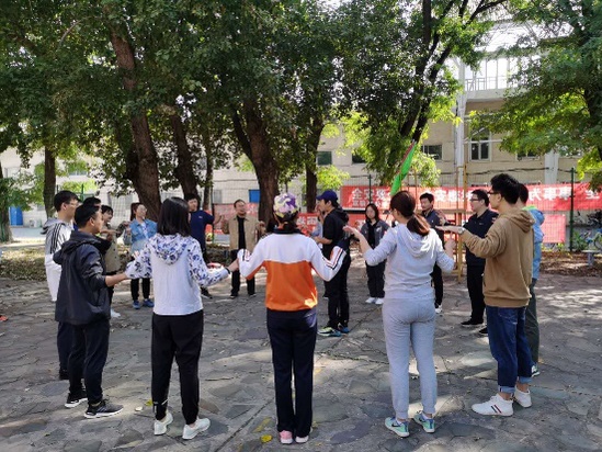此次青年教师团建及素质拓展活动共分为破冰、团队建设、体验项目、分享回顾及引导总结五个环节。所有青年教师通过抽签方式随机分为两队,通过破冰活动,使各队成员之间迅速熟悉,在短时间内打破心中的“坚冰”。接下来两队队员均参加了“信任背摔”和“高空断桥”项目,充分展现了“团结合作、战胜自我”的活动主题。