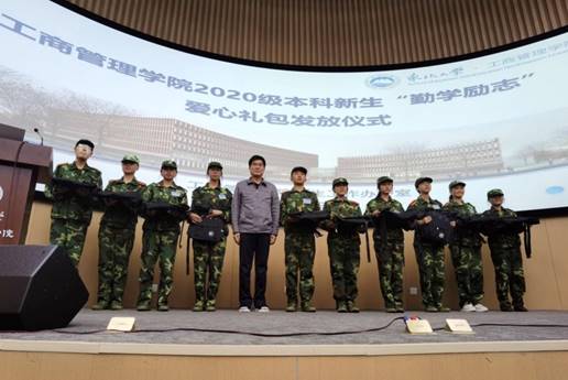 9月23日下午,工商管理学院举行2020级本科新生“勤学励志”爱心礼包发放仪式。学院党委书记郝树满,党委副书记兼副院长严立宁,学生工作办公室相关人员,家庭经济困难学生代表参加活动。