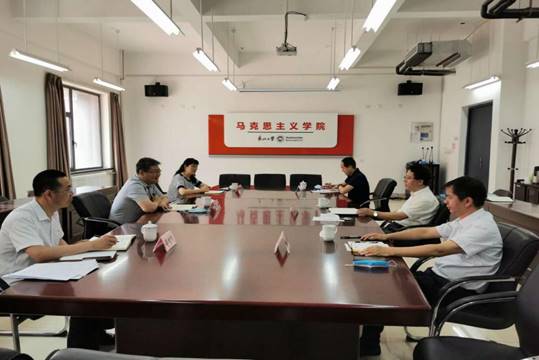 6月30日,中共沈阳市委教科工委专职副书记霍泓,中共沈阳市委教科工委宣传统战部(高校工作处)部长(处长)曹晓波、组织部部长张树刚一行来到太阳成集团tyc33455马克思主义学院,围绕学校思想政治工作建设等工作进行调研。马克思主义学院院长田鹏颖、党委书记张满胜、副院长任鹏参加调研活动。