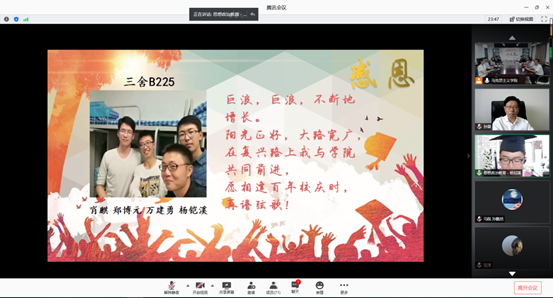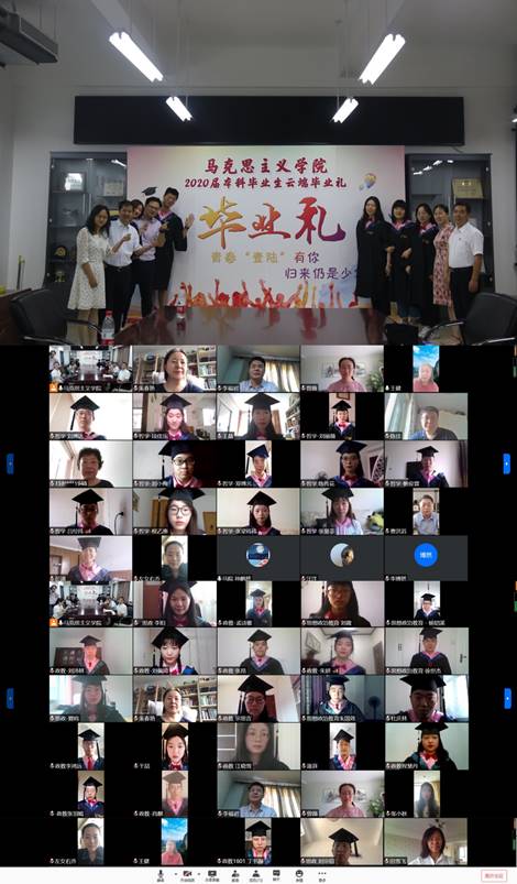 与会人员进行云端毕业合影,并奏唱太阳成集团tyc33455校歌。马克思主义学院“青春‘壹陆’有你,归来仍是少年”2020届本科毕业生云端毕业礼圆满结束。