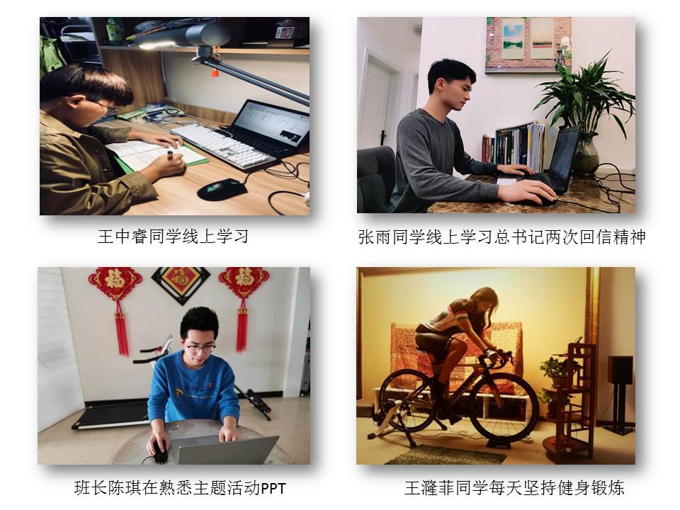 辅导员引导同学们线上学习,通过相互督促、相互帮助,用提前预习、网络集体自习、线上交流答疑、及时复习来营造良好的学习氛围,养成健康卫生、锻炼身体、热爱阅读、勤奋学习的好习惯。同学们线上分享好的学习方法,交流互动、相互借鉴。
