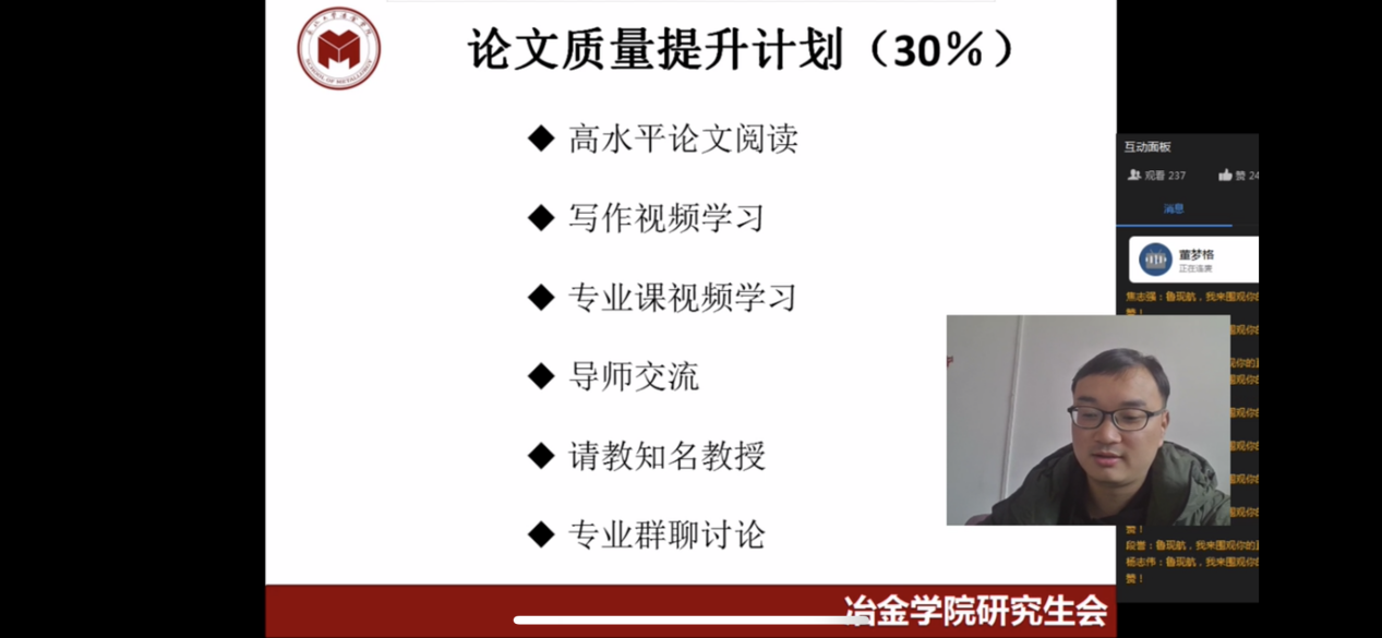 本次线上直播活动理性和温情并存,采用“直播学术交流”的新方式,旨在突破专业、学历层次和地域的限制,提升研究生表达力,为五湖四海的师生们传递广谱性的学习智慧和正能量。
