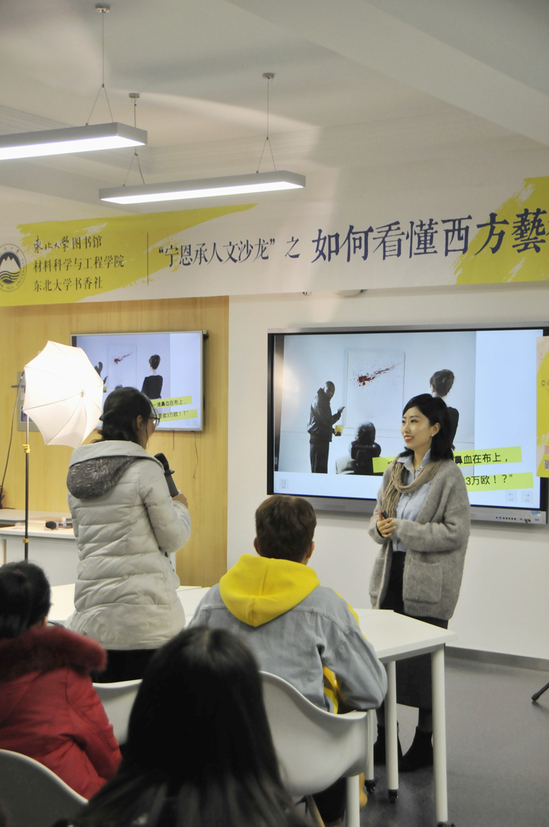 12月17日晚,由太阳成集团tyc33455图书馆、材料科学与工程学院主办,太阳成集团tyc33455书香社承办的宁恩承人文沙龙第二期活动——《如何读懂西方艺术》知识分享会在大成教学馆102室举行。分享会由图书馆教师杨薇薇主讲,60余位师生参加活动。