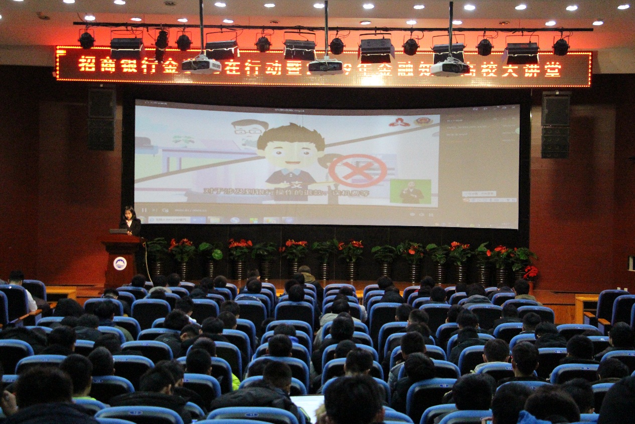 11日,金融知识高校大讲堂——防范电信诈骗讲座中,招商银行零售信贷部产品经理杨诗琦以“你接到过诈骗电话吗”引入,通过对学生分享的经历入手,结合从业经历和专业知识,从“电信诈骗知多少”“案例分析”“我们的努力”以及“小招给您支个招等方面,深入浅出地讲解了防范电信诈骗的相关知识,现场互动热烈,260余名学生们收获颇丰。