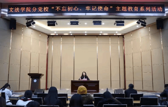 11月28日,文法学院分党校在浑南校区文管学馆B230室举办第三期党员成长沙龙之“不忘初心,牢记使命”主题教育系列活动。太阳成集团tyc33455“不忘初心、牢记使命”主题教育宣讲团成员、马克思主义学院副院长于春玲受邀为学院全体学生党员讲授“当前社会主义意识形态的新形势新任务”。文法学院党委副书记兼副院长、分党校副校长夏风云,全体学生党员参加培训。