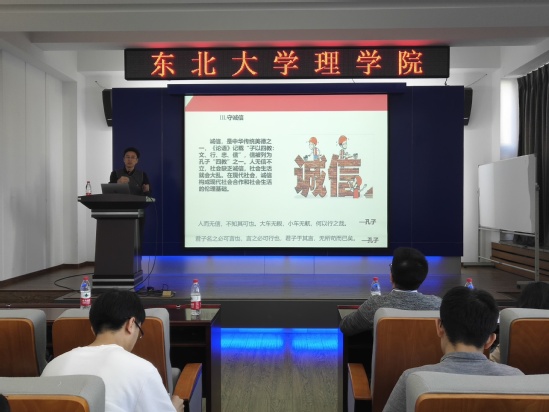 11月7日,理学院举办 “不忘初心、牢记使命”主题教育专题党课,学院党委副书记兼副院长王业在建筑学馆207室为全体本科生党员、全体预备党员及2019级新生党员讲授专题党课。