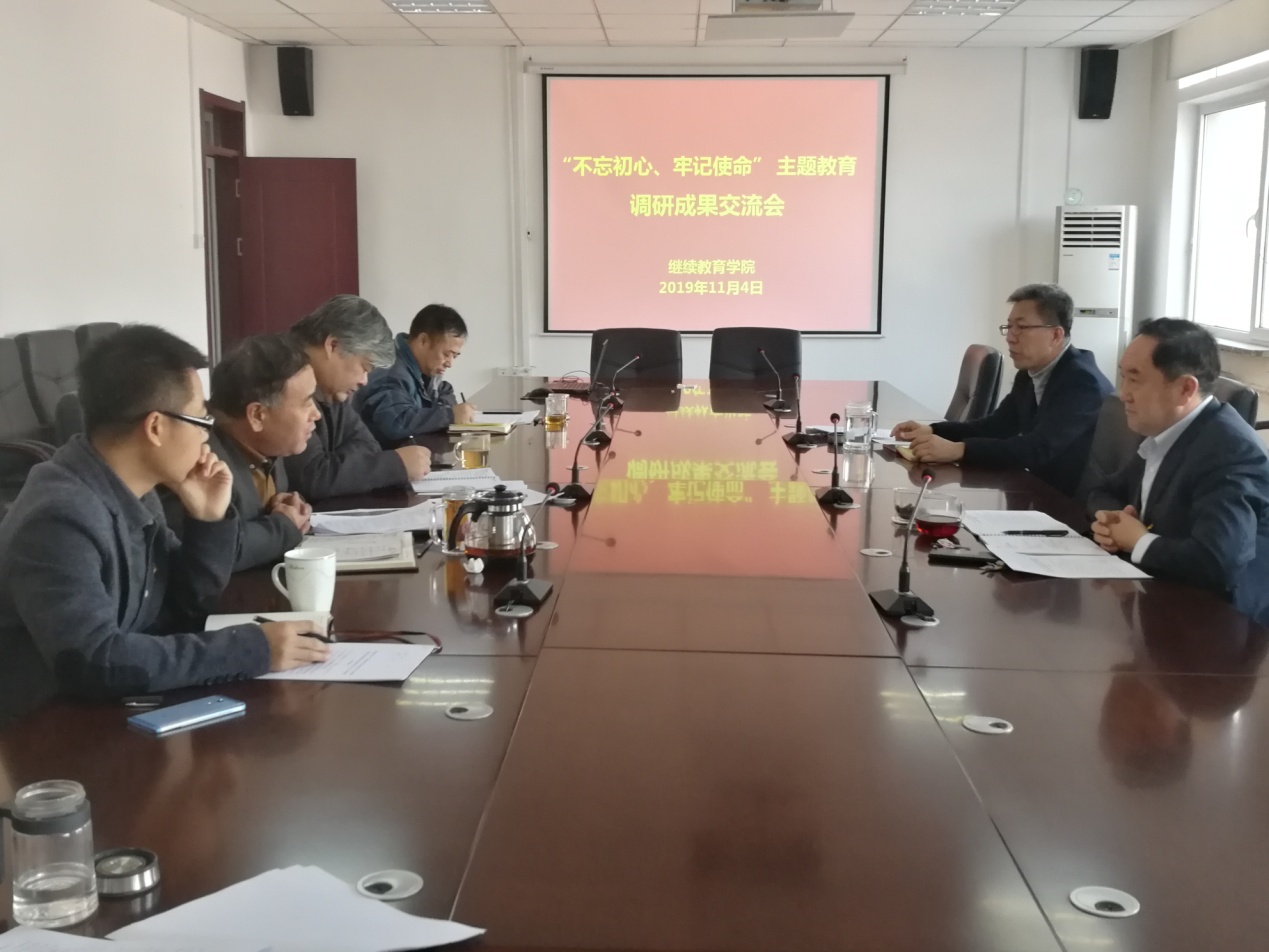 1月4日上午,继续教育学院在沈河校区教学二馆212室召开了“不忘初心、牢记使命”主题教育调研成果交流会。学院领导班子成员参加会议。