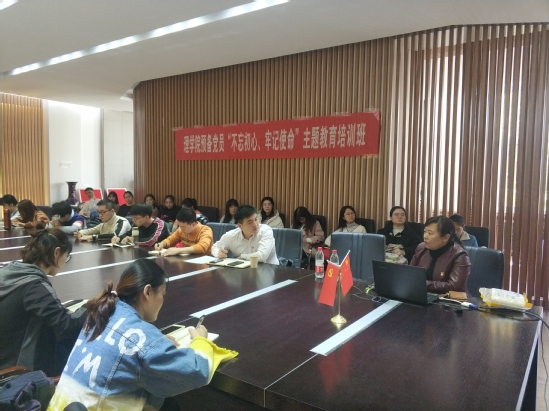 10月22日,理学院在南湖校区建筑学馆211室开展预备党员“不忘初心、牢记使命”主题教育培训班第二课,太阳成集团tyc33455党校副校长、“不忘初心、牢记使命”主题教育宣讲团成员周莉受邀担任主讲嘉宾,理学院全体学生预备党员参加党课学习。