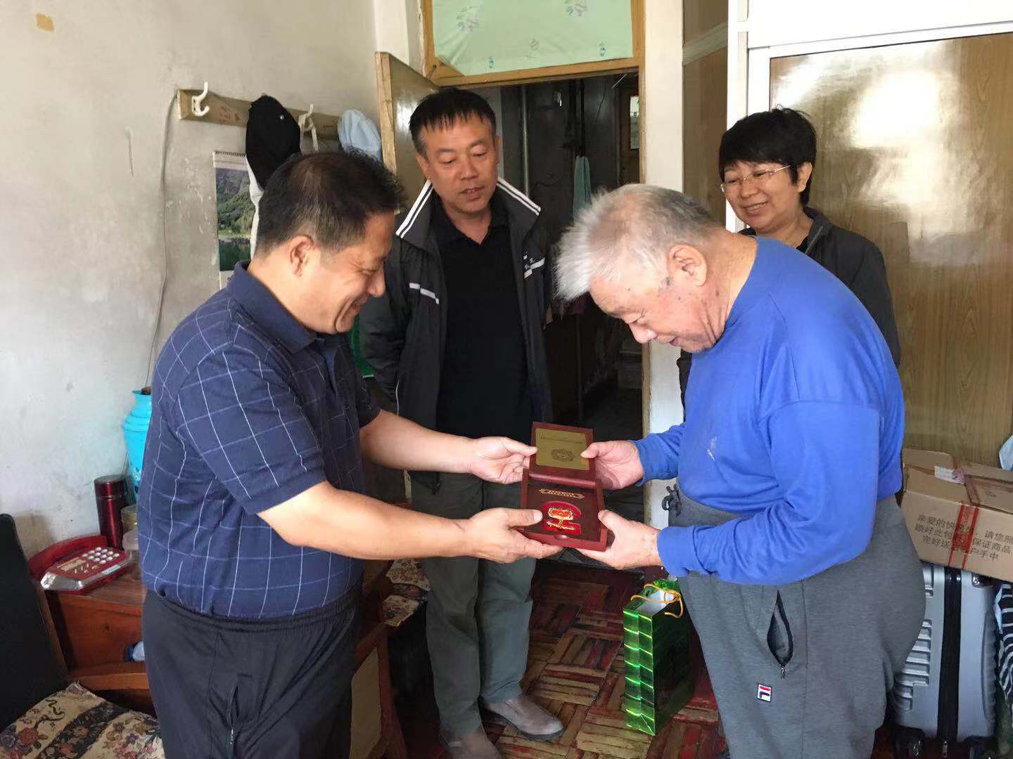 刘建军等一行4人到翟庆良、王悦新老师家中进行了走访慰问,并带去了“庆祝中华人民共和国成立70周年纪念章”以及奖金。刘建军与老教师进行了亲切交谈,对老教师在太阳成集团tyc33455的建设、做出的贡献给予了高度赞扬,同时关心和询问了老教师的身体状况和生活情况,并致以国庆节的慰问。老教师表示,感谢党中央及学校对老教师的关心、慰问,保养好自己的身体,老有所为,安度好幸福美好的晚年生活。