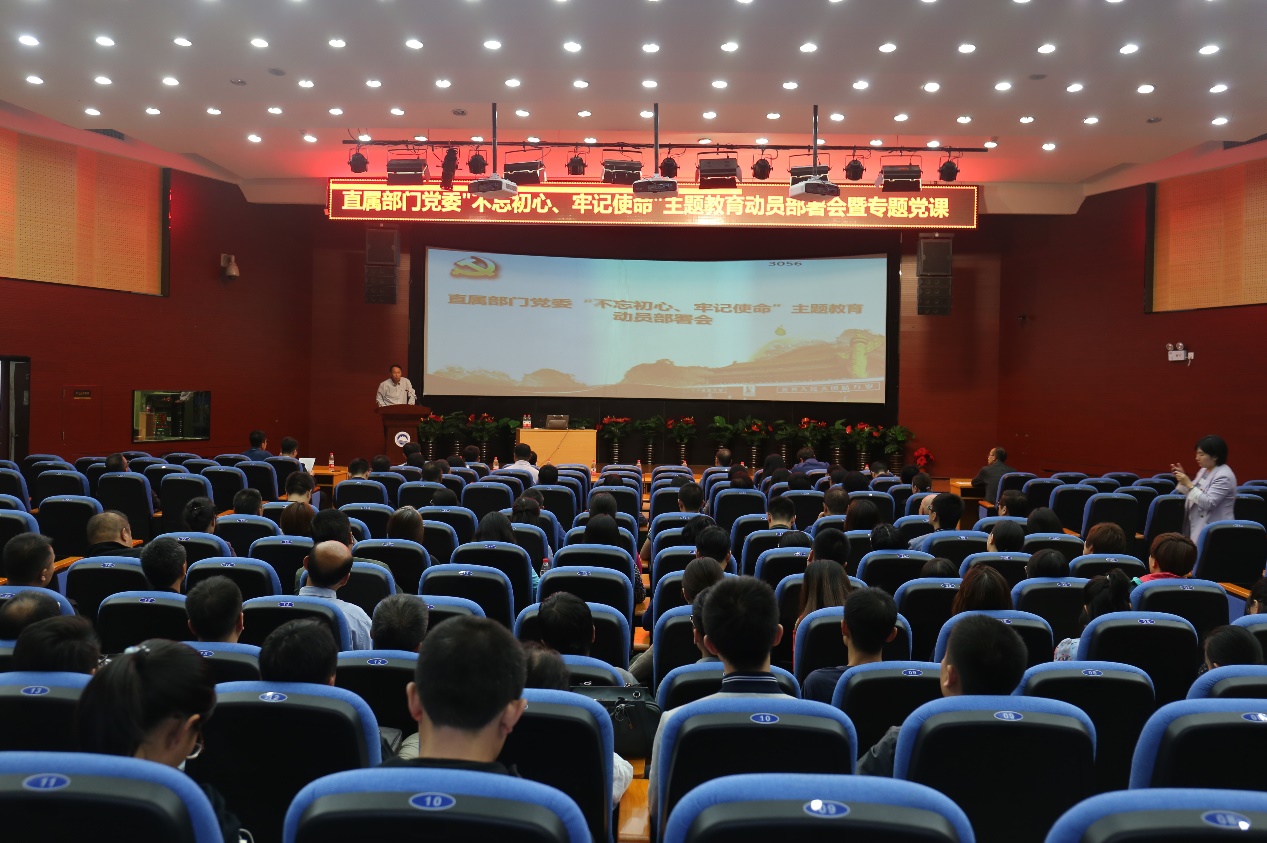 9月19日下午,直属部门党委在科学馆建龙报告厅召开“不忘初心、牢记使命”主题教育动员部署会,深入贯彻落实习近平总书记在“不忘初心、牢记使命”主题教育工作会议上的重要讲话精神,传达学校党委关于开展主题教育的要求部署,对直属部门党委所属各支部和全体党员开展集中动员和部署。直属部门、学校主题教育巡回检查组相关负责人以及直属各部门主要负责同志和全体党员参加会议。